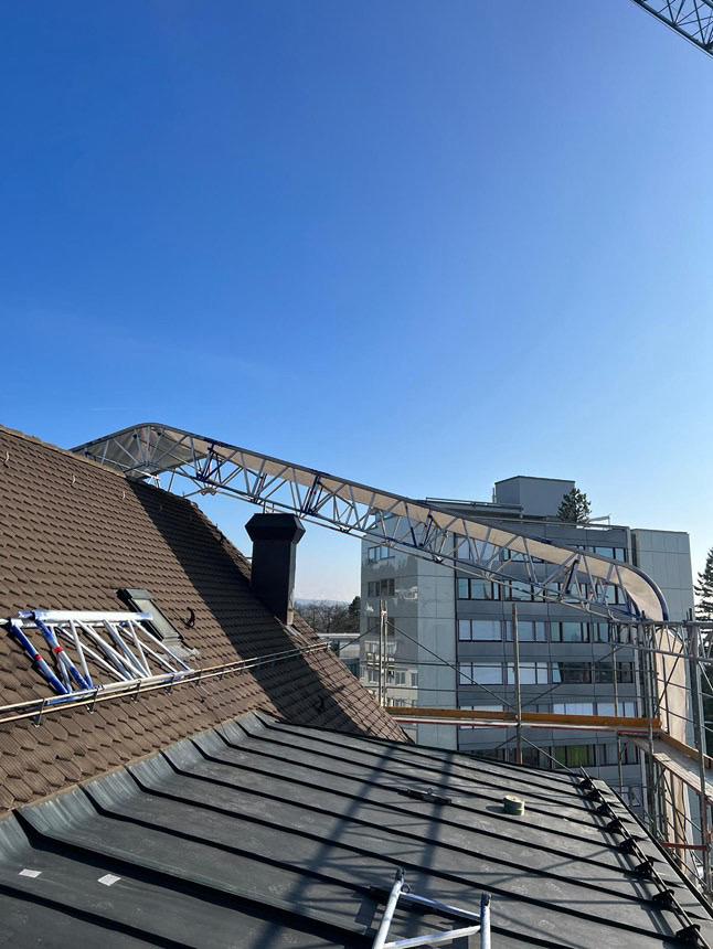 Heute zeigen wir euch ein kleines, aber technisch feines Projekt aus Bern: Ein Fassadengerüst mit Wetterschutzeinhausung, montiert auf der obersten Lage.