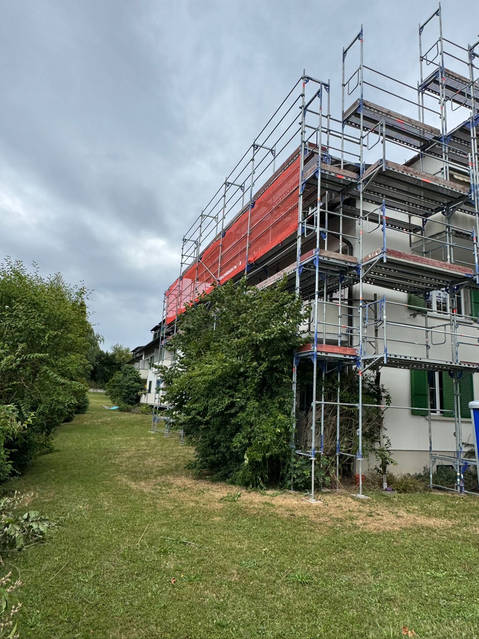 Dort haben wir die Fassade eines Wohngebäudes fachgerecht eingerüstet – inklusive Treppenzugang für einen sicheren und komfortablen Zugang.